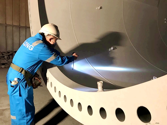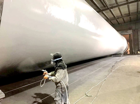 圖2:塔筒外部噴涂現場