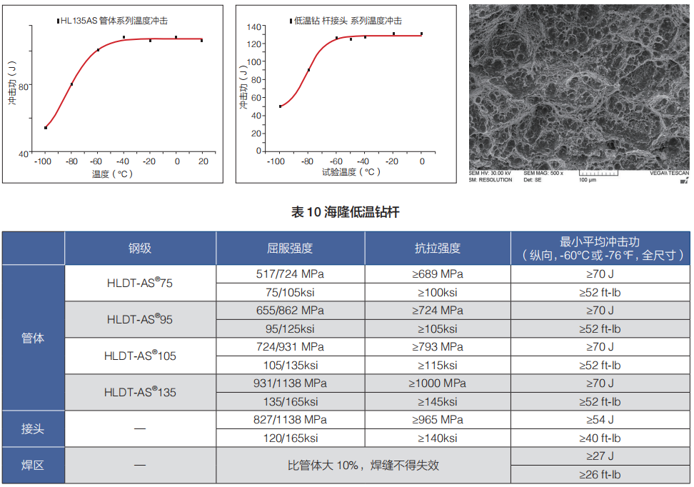 海隆低溫鉆桿是針對高寒地區(qū)油氣勘探作業(yè)需要,自主研制開發(fā),適用于低溫環(huán)境的專用鉆桿。使用溫度-60℃及以上。